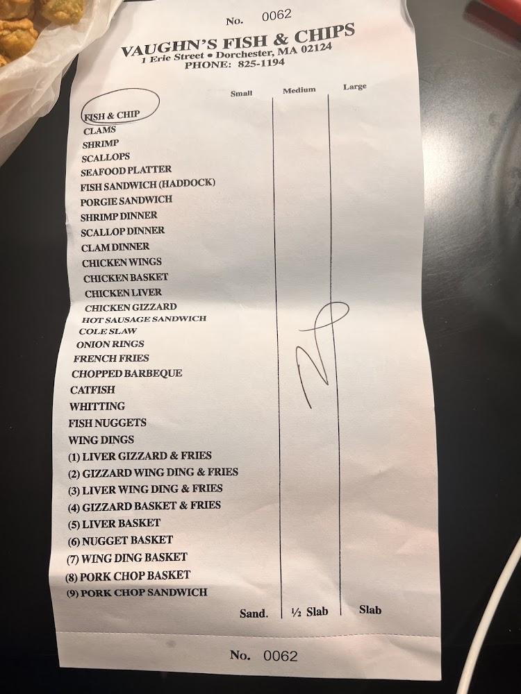 Welcome to Vaughn Fish & Chips, your go-to seafood haven located at 1 Erie St, Dorchester, MA. We specialize in a delightful array of traditional fish and chips, alongside local specialties that promise to tantalize your taste buds. Our casual atmosphere is perfect for a solo bite or a cozy meal with friends and family. Enjoy convenient takeout, dine-in, or delivery options, along with accessible facilities for everyone. With affordable prices ranging from $10 to $20, and a menu featuring everything from fried shrimp to delicious fish sandwiches, Vaughn Fish & Chips is your destination for quality seafood. Join us for lunch or dinner and indulge in a true culinary experience!